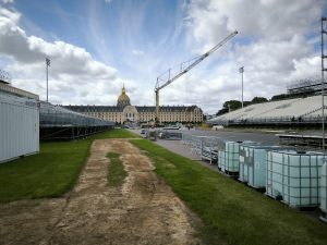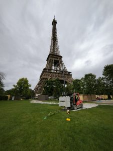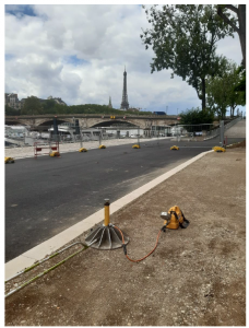 Dans le cadre de l’installation de tribunes pour l’accueil du public lors des JO 2024, l’agence NextRoad Paris-Nord a réalisé des essais de portance pour vérifier l’aptitude des sols à reprendre les charges des structures temporaires.